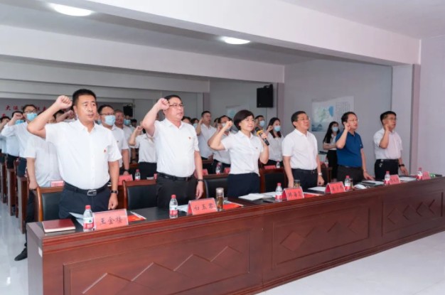 集團黨委書記、董事長韓海霞同志帶領全體黨員重溫入黨誓詞