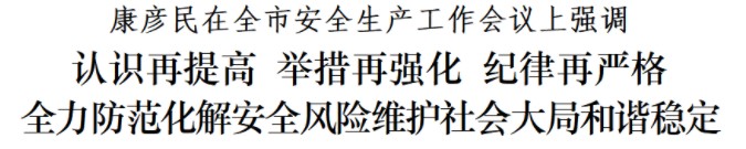 會(huì)議指出,做好安全生產(chǎn)工作、營造安全穩(wěn)定的社會(huì)環(huán)境,是壓倒一切的政治任務(wù),是必須扛起的政治責(zé)任。各級(jí)各部門要做到思想認(rèn)識(shí)再提高,始終堅(jiān)持人民至上、生命至上,全面貫徹“疫情要防住、經(jīng)濟(jì)要穩(wěn)住、發(fā)展要安全”重要要求,進(jìn)一步增強(qiáng)抓好安全生產(chǎn)工作的責(zé)任感緊迫感,以嚴(yán)管嚴(yán)防的高壓態(tài)勢(shì),深挖風(fēng)險(xiǎn)隱患、堵塞安全漏洞,確保萬無一失。