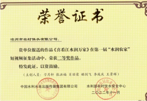 日前,由水利部在全國范圍內組織的第一屆“水潤農家”短視頻大賽落下帷幕,來自全國22個?。ㄗ灾螀^(qū)、直轄市)的百余部作品“同臺競技”,滄州水務發(fā)展集團有限責任公司籌拍報送的作品上榜,榮獲二等獎。