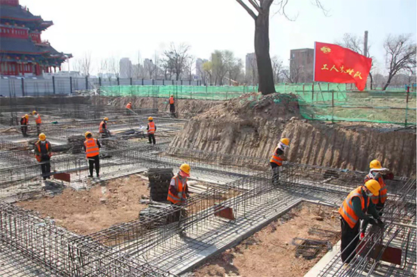 南川樓、朗吟樓項(xiàng)目聯(lián)合黨支部將“工匠精神”貫穿于建設(shè)作業(yè)中,提出“敢于迎戰(zhàn)、不提困難”的南川樓精神,積極籌備億元資金,組建起具備專業(yè)素質(zhì)的施工管理隊(duì)伍沖鋒陷陣,盡銳出戰(zhàn)。聯(lián)合黨支部充分發(fā)揮黨員的先鋒模范作用,5月4日開(kāi)工建設(shè),5月18日基槽驗(yàn)收,6月25日封頂,創(chuàng)造了36天完成一座古樓興建,地下1層地上6層的4793平方米框架封頂?shù)钠孥E,打破地下結(jié)構(gòu)45天封頂?shù)某R?guī)模式。