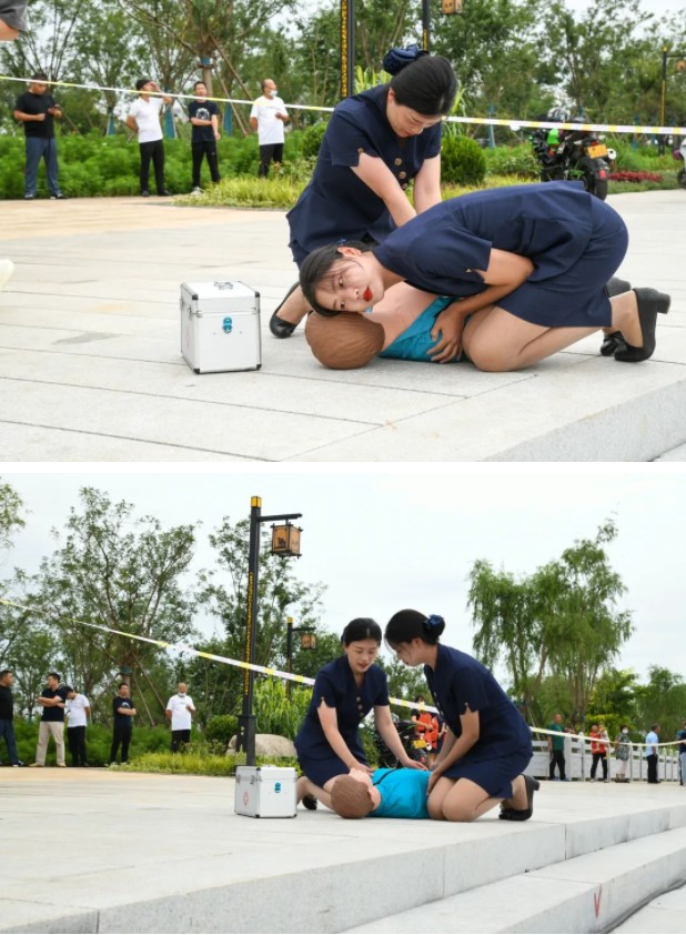 邀請(qǐng)了北京紅十字會(huì)金牌講師贏奧為青年志愿者及現(xiàn)場(chǎng)工作人員授課。通過(guò)講解、示范、互動(dòng)相結(jié)合的方式,對(duì)旅游通航中突發(fā)狀況的處置方式進(jìn)行了科學(xué)詳盡的講解。