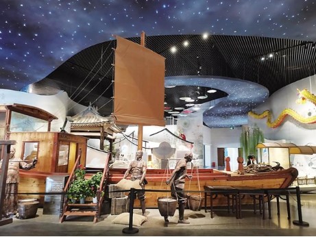 與物質(zhì)文化遺存的弘揚(yáng)和傳播不同,中國大運(yùn)河非物質(zhì)文化遺產(chǎn)展示館則對運(yùn)河非遺數(shù)字化進(jìn)行了嘗試。隨著園博會的開幕,非遺展示館成了滄州非遺文化的集大成展示地。展館內(nèi)陳列了大運(yùn)河全域非物質(zhì)文化遺產(chǎn)總覽和滄州非物質(zhì)文化遺產(chǎn)保護(hù)成果展,設(shè)置了重點(diǎn)活態(tài)展示項(xiàng)目和若干多媒體互動項(xiàng)目,以及多媒體沉浸式體驗(yàn)項(xiàng)目。通過數(shù)字內(nèi)容與多媒體技術(shù)的完美應(yīng)用,滿足觀眾探秘運(yùn)河文化的好奇心和求知欲。