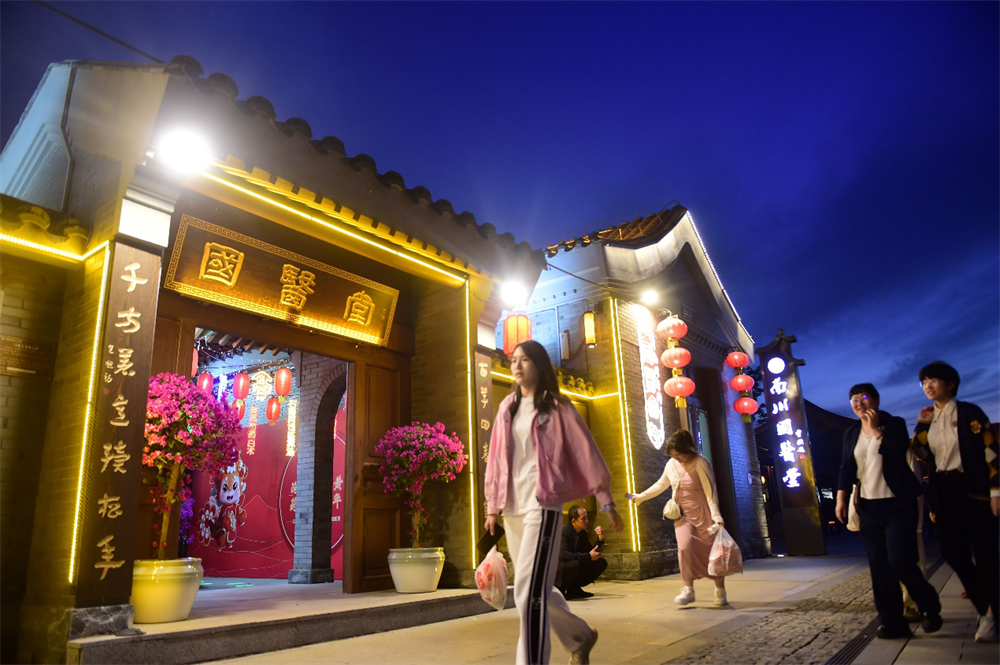 游客在位于南川老街的滄州中西醫(yī)結(jié)合醫(yī)院國醫(yī)堂,了解運河兩岸的中醫(yī)藥文化。傅新春攝