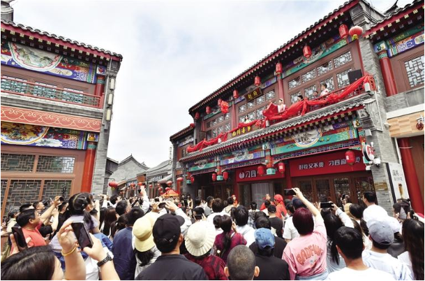 在風(fēng)景如畫的南川老街,“五一”假期,眾多游客來到這里看表演、品美食、拍寫真、賞非遺,感受滄州獨特的運河文化。在這里,有以南川老街為主題創(chuàng)造點,展示繡球招親全過程的《南川喜事》情景劇演出;有包含樂器、舞蹈、走秀等節(jié)目的南川首屆少兒才藝匯演;有依托古風(fēng)建筑,網(wǎng)紅特色美食云集,舞美演藝不斷的古風(fēng)美食文化節(jié)……豐富多彩的文化活動,為游客帶來別樣的假日體驗。