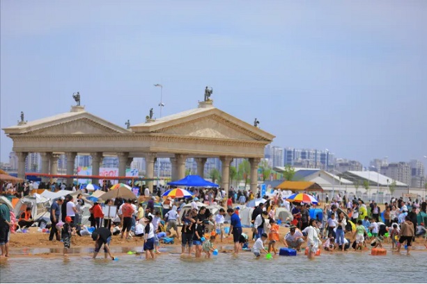 同樣位于渤海新區(qū)黃驊市的十里金沙灘,在“五一”前夕裝扮一新,開園迎客。景區(qū)內(nèi)同時還舉辦了大型風(fēng)箏節(jié)、萌寵樂園、泰國風(fēng)情表演等活動,吸引了眾多游客前來“打卡”。假期前兩天,金沙灘景區(qū)就接待游客5.4萬人次。