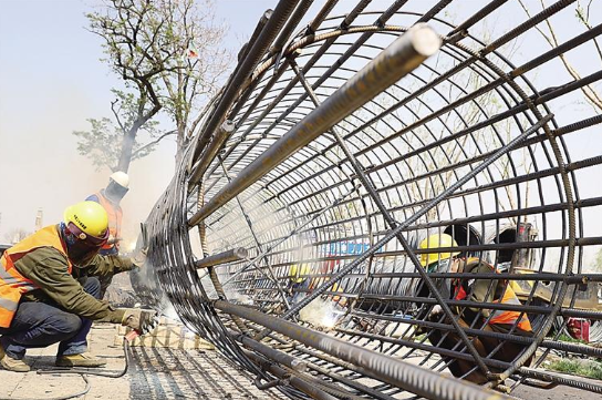 近日,記者在百獅園內(nèi)飛鴻橋施工現(xiàn)場看到,鋼筋加工區(qū)焊花四射,工人正在緊鑼密鼓地進(jìn)行樁基鋼筋籠焊接作業(yè)。據(jù)施工方中鐵二十局集團有限公司項目負(fù)責(zé)人介紹,他們承建的中心城區(qū)大運河文化戰(zhàn)略生態(tài)修復(fù)與通航項目,將建設(shè)飛鴻橋、幕云橋、歲宴橋三座橋。飛鴻橋是一座橫跨大運河的步行橋,連接百獅園與南川樓,橋梁跨度達(dá)58米,采用鉆孔灌注樁基礎(chǔ),鋼結(jié)構(gòu)箱型截面拱,造型獨特美觀,建成后能充分體現(xiàn)滄州文化氣韻。幕云橋、歲宴橋坐落在大運河公園,其中歲宴橋建在原浮橋位置,連接大運河公園與清池大道;幕云橋延續(xù)佟家花園公園內(nèi)游步道,連接佟家花園與大運河公園,建成后將解決游客繞行困難,最大程度地實現(xiàn)“景觀”與“觀景”的雙重價值。