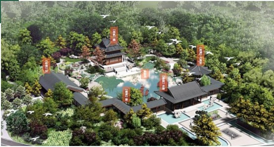 展現(xiàn)宋式建筑特色的要數(shù)“翠云禪茶”,主建筑翠云樓,屋檐滴水,雕梁繡柱,別有一番韻味;“云雅晚香”處的晚香樓,展現(xiàn)大名府文化的同時(shí),也體現(xiàn)“執(zhí)政為民,廉潔奉公”的時(shí)代價(jià)值觀;“云月挹芬”,建筑與晚香樓相呼應(yīng),還原晚香堂外水池蓮藕、遍種黃花的場景?!傲杞窍阍啤碧幍牧锜熗?,位于制高點(diǎn)處,內(nèi)瞰園景,外攬山水,靈動(dòng)的涌泉,漣漪陣陣,成為園內(nèi)外的視覺焦點(diǎn);“宋城煙云”則將掩埋在歷史深處等待挖掘的宋城,以抽象意境的形式展現(xiàn)在世人面前。