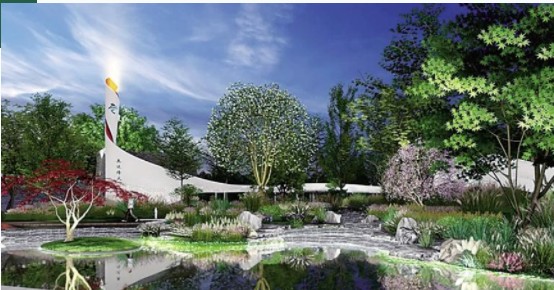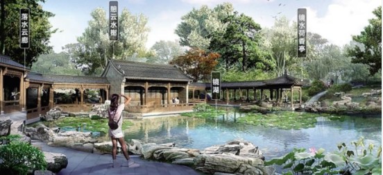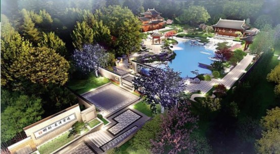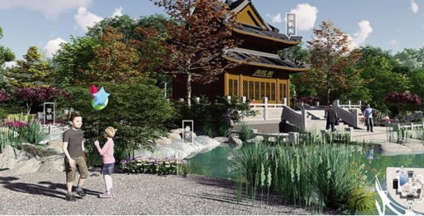 邯鄲園 ——宋云八景 河府文化 位于展園區(qū)南部、大堤?hào)|側(cè)的邯鄲園,融入大名府及運(yùn)河文化,建筑以宋風(fēng)為基調(diào),以云化名、一湖八景,營造宋云之境。 園中營造的8處景觀,無一不是意蘊(yùn)豐富,文化味兒十足。 隨著游人的腳步,宋云八景(以下簡稱八景),依次展開。入園后,最先映入眼簾的是掛畫“偷云入畫”,框景內(nèi),園中美景盡收畫中,游人可于此處閱覽全園。然后是“白溝云源”,大名府的白溝為運(yùn)河肇始,以舟形水源暗指運(yùn)河源頭,與運(yùn)河文化相呼應(yīng)?!袄@城踏云”處,青磚墻上設(shè)計(jì)意向城墻樣的鏤空?qǐng)D案,懸掛官員簡介及銅靴,有繞城祈福和樹立官員典范的作用。