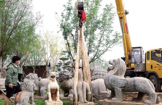 百獅園里,主入口處,由太湖石擺放的獅子造型假山赫然在目,抬頭望去,30米長的獅子浮雕墻正在安裝,新栽種的4000余棵喬灌木長勢(shì)良好,沿河垂柳依依,山坡上海棠、碧桃花落滿地。運(yùn)河畔,兩座大橋建設(shè)正酣,透過圍欄,可看到起重機(jī)轟鳴作業(yè)。
