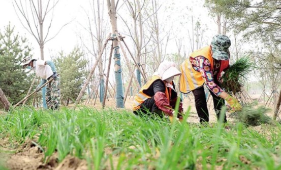 在公園的西南角,新增加的運(yùn)動(dòng)場(chǎng)及游樂場(chǎng)正在施工。園內(nèi)沿河路上,不少工人忙著補(bǔ)種和移栽樹木及地被。此次改造,百獅園重新修復(fù)原生河岸植被,補(bǔ)植垂柳,再現(xiàn)柳岸風(fēng)貌。同時(shí),增加法桐、國槐、白蠟等本地樹種,以及海棠、碧桃、木槿、迎春花等開花灌木,使園區(qū)的景觀更有層次。