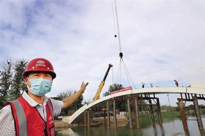 據(jù)悉,施工人員后續(xù)將開展橫縫、縱縫、橫隔板等部位焊接作業(yè),為橋梁附屬施工及地面道路施工爭取更多時間。這座橋作為連接百獅園公園與南川樓的重要人行景觀橋,確保了大運河生態(tài)景觀一體化、連續(xù)化。