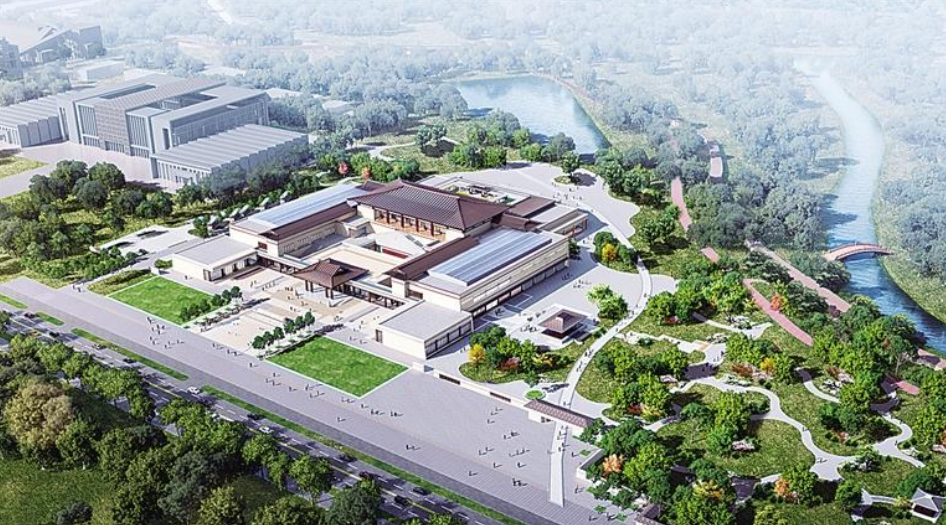 這個占地90畝、建筑面積達3.1萬平方米的展示中心,大氣開闊,以中軸線為中心、兩側(cè)對稱分布的格局,外觀和色調(diào)呈現(xiàn)濃濃的隋唐風(fēng)情。