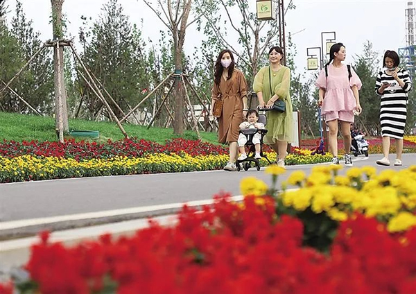在核心展示區(qū),3米高的綠雕鮮花造型,成為“熱門打卡地”,吸引了不少游客拍照留念。工作人員介紹,這一造型以雙心依偎連接的形態(tài),傳達出對美好生活的深切期待和向往。