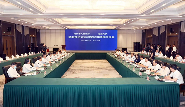 郭健表示,滄州歷史文化悠久、人文底蘊(yùn)深厚、發(fā)展勢(shì)頭強(qiáng)勁。長(zhǎng)期以來(lái),雙方在人才培養(yǎng)、科技成果轉(zhuǎn)化、文化傳承創(chuàng)新等方面開(kāi)展深度合作、結(jié)下深厚友誼。希望雙方在更深層次共建合作新格局,積極探索校地合作新模式,共同提升傳統(tǒng)文化品牌價(jià)值,為中華優(yōu)秀傳統(tǒng)文化創(chuàng)造性轉(zhuǎn)化、創(chuàng)新性發(fā)展提供可借鑒的模式和路徑。下一步,河北大學(xué)將選派精干力量,組建專業(yè)團(tuán)隊(duì),全力推進(jìn)大運(yùn)河文化帶建設(shè),扎實(shí)推動(dòng)習(xí)近平總書(shū)記重要講話精神和黨中央決策部署、省委工作要求落地生根、開(kāi)花結(jié)果。