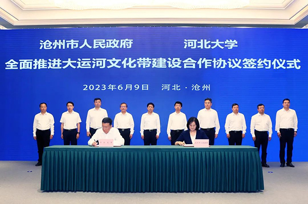 6月9日,滄州市人民政府、河北大學(xué)全面推進(jìn)大運(yùn)河文化帶建設(shè)合作協(xié)議簽約儀式在大運(yùn)河迎賓館舉行。市委書(shū)記康彥民,河北大學(xué)黨委書(shū)記郭健出席簽約儀式。市委副書(shū)記、市長(zhǎng)向輝出席并介紹情況。